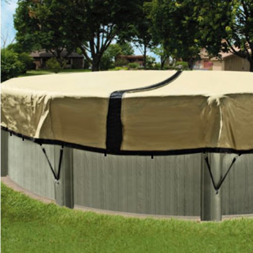Take the hassle out of spring opening with the Ultimate Above Ground Pool Cover! Designed for strength and durability, the new Ultimate Above Ground Pool Cover is manufactured with Armorkote technology and features a 6 inch panel of our patented Micro Mesh Cover material, allowing water to pass through while keeping dirt and debris out. The Ultimate Above Ground Pool Cover is secured to the pool using heavy duty UV resistant straps, looped through clips that are attached to your uprights. And the Ultimate Above Ground Pool cover is the only winter cover that features a rugged, double stitched binding with fabric reinforced loops. The Ultimate Above Ground Pool Cover comes complete with heavy duty UV resistant straps, strap clips, protective wear guards and all necessary hardware. Please order by pool size! 12 year warranty.