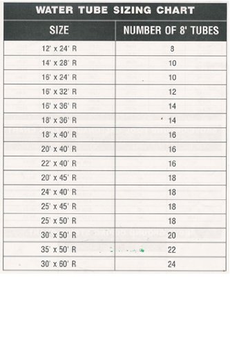 - Each water tube measures 1' x 8' ft long and is a single chamber water tube