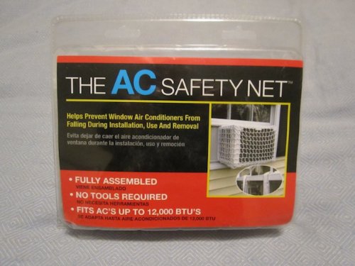 The AC Safety Net enables users to more safely install, use and remove window style air conditioners. The risk of a window air conditioning unit falling out the window opening is substantial since they can be heavy and awkward to handle. The new, patented AC Safety Net solves that problem. Easy to install to the inside of the window before you put it up to the opening the AC Safety Net will keep that air conditioner from plummeting to the ground below creating a potentially costly and dangerous situation. Made of strong durable weather resistant mesh netting with elastic seams it easily slips onto the AC unit. Custom made sash hooks, adjustable straps and cam-buckles help ensure a custom fit. 1 size fits all window style air conditioners from 5k to 12k BTU's. Fits 90 percent of all residential units. Homes with window air conditioners own 3 or more units. Easy to use, fully assembled, no tools required. Helps protect people, pets, plants and the product. No more window air conditioner brackets or AC supports.