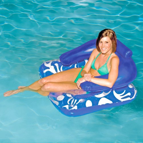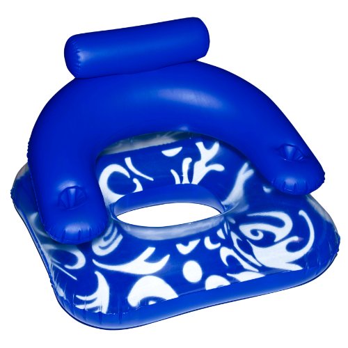 1017000 Features: -Lounger.-2 Cup holders.-Large back rest.-Neck support pillow.-Open seat-bottom to keep you cool while you casually drift.-Intended for ages 9+. Construction: -Constructed of durable PVC vinyl. Color/Finish: -Color: Blue / White. Specifications: -2 Stem valves for easy inflation.