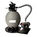 - Includes liner, pump and sand filter system, A-frame entry ladder, and wide-mouth skimmer