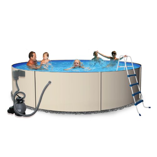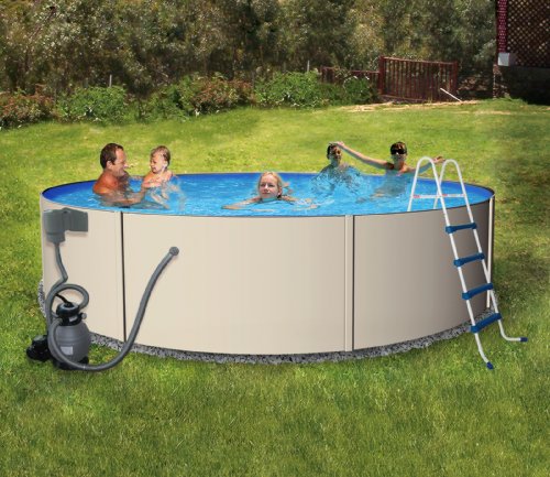 Combines the durable strength of steel at this great price. The new Rugged Steel pool will five you and your family many-year of outdoor pool fun. This revolutionary new pool has all the features of a more expensive pool, at a very economical price: SUPER STRONG Steel construction - made of high quality treated steel, this pool will outlast plastic or vinyl pools. FULLY FUNCTIONAL SKIMMER Unlike Intex skimmers our skimmer is fully functional. It will keep your pool free of surface debris and standard automatic cleaners and manual vacuums easily hook up to the pools return. This Rugged Steel pool is easy to clean and maintain. QUALITY PUMP AND FILTER SYSTEM WITH MULTIPORT VALUE Our Rugged Steel pool comes standard with a easy to use sand filter system and high performance pumps. They insure proper filtration so your pool is easy to keep crystal clear and germ free. CORROSION PROTECTION All steel parts are protected by a zinc alloy coating that gives this Rugged Steel pool superior corrosion resistance. Backed by a 15-year warranty. This pool has all the quality features that usually cost hundreds of dollars more. The pool is easy to install and it comes with complete installation instructions. round sizes only. Get your family into a quality Rugged Steel pool at this great price. The following is a list of the components that make up the NB3310: NB1067A – pool NE6145A – sand filter NE6145B – pump NL206-20 – liner NA323 – skimmer NE1215 – A-frame ladder