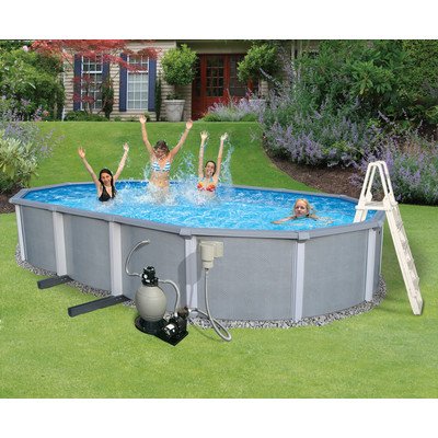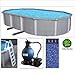 Blue Wave Zanzibar 15-Feet by 25-Feet Oval 54-Inch Deep 8-Inch Top Rail Metal Wall Swimming Pool Package