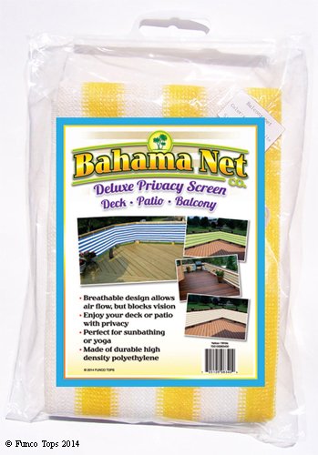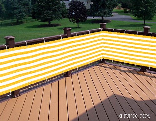 Deluxe Yellow/white Striped Privacy Screen Net for Deck, Balcony, Fence, Pool or Patio. 35" H X 196" L Inches (Includes 2 Attachment Options: White Rope & Brass Upholstery Nails)