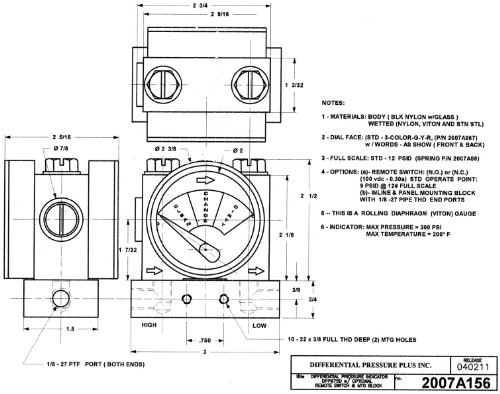 The DPP975 has been our best selling filter indicator for almost 20 years! The design is rated for 300 PSI max system pressure, 200F temperatures, and can be designed to feature a variety of different pressure ranges and electrical switches upon request. These gauges are proudly made in Connecticut, USA, and can ship very quickly. If you have any questions or specific requests let us know, we have many years of experience and a full engineering staff. Differential Pressure Plus Inc. has been a leading manufacturer of differential pressure gauges and filter indicators since 1991. We are located in Branford, CT and have distribution worldwide, including our new office located in Beijing, China. Our differential pressure gauges are designed for a variety of applications that include filter monitoring, liquid level, cryogenics, flow rates, hydraulics, and heat exchanger monitoring. We have a staff of engineers and a rapid prototyping department that can help design the right gauge for you. Our website is differentialpressure.com and phone: 203-481-2545.