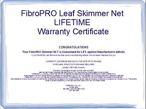 *This is the final frontier on Professional pool nets. *Aluminum alloy frame allows 50 lbs of lifting capacity without compromise. Warranty Certificate is Included with your Net. * Each unit is manually assembled with pride. * Warranty document from an established Fibropool Co USA. *If the product fails, we will provide you with a FREE replacement. *Dual web system protects the net from surface abrasion. *Fits all standard pool poles * Quick connect clip is built in