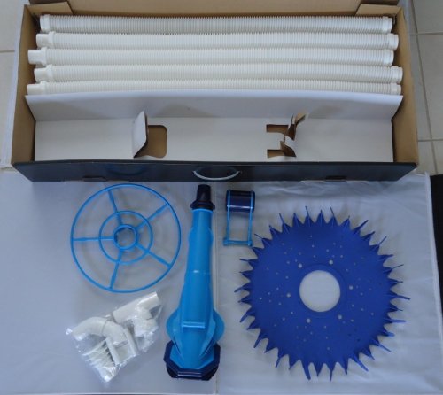 This pool cleaner can be connected to your pump and filtration system to vacuum up algae, dirt and debris and keep your pool water sparkling clear. It will clean any in/above ground pool regardless of shape or depth. It works on all pool surfaces: vinyl, concrete & fiberglass. This automatic cleaner uses a large skirt and a diaphragm propulsion system to crawl around your pool floor in a random pattern, covering the entire pool floor while cycling your water. It will also clean a small way up the pool sides depending on the amount of curve at the pool floor / wall intersection. Powerful cleaning performance, reliability, maintenance free are the outstanding characteristics of this pool cleaner vacuum. It comes in COLOR box with a owner's manual. Package Includes: 1. 10 Hoses= 9 FxM and 1 FxF. Total 32.8 feet long. 2. Hose weight. 3. Skimmer Adjustable Regulation Valve. 4. Skimmer adapter cone. 5. Instruction Manual.