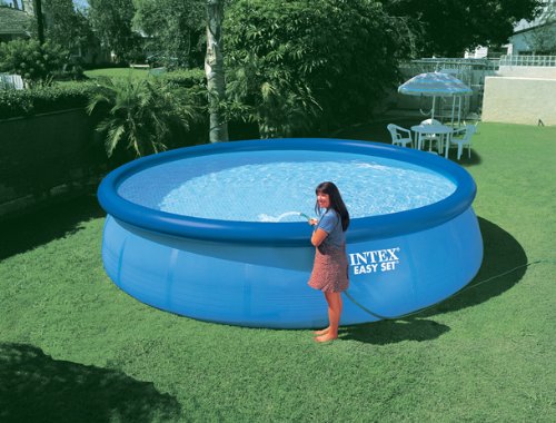 The Intex 18-feet by 48-Inch Easy Set Pool 56904EG, is a quick route to summertime pool fun. Just find a level surface, inflate the top ring and fill with water. Comes with 1500-gallon Filter Pump to keep your pool sparkling clean.