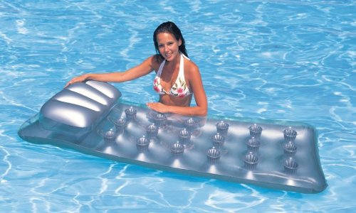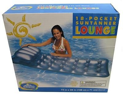 Soak up the rays while relaxing on the Intex 58894EP 18-Pocket Suntanner Pool Lounger. Featuring a comfortable built-in pillow and durable vinyl construction, the pockets even double as cup-holders. Its french coil-beam style air mattress is supportive and comfortable, and its 11-gauge vinyl top and 12-gauge bottom makes it extra durable. This floating lounge is the right choice for a warm day out on the water!