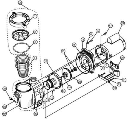 Pentair WhisperFlo Pump Part Clamp, cam & ramp, plastic, almond, WF Used on pumps manufactured after 12/17/99 Part # 357199 Number 1 in the diagram.