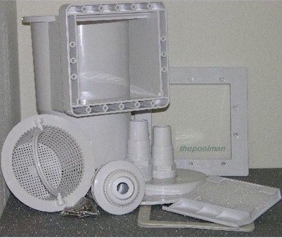 - vac plate, hose adapters, skimmer basket, stainless steel screws, directional flow outlet fitting and twist locking skimmer cover lid