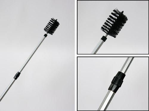 Strong hexagonal aluminum pole with screw on strong bristle brush that is approx 5 Inches by 4 inches. Ideal for scrubbing rocks or retrieving string algae.