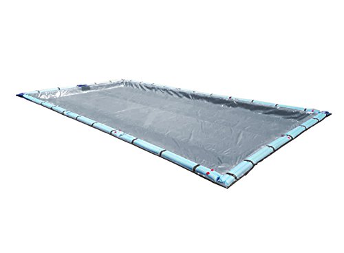 The Robelle Dura-Guard Ultra Winter Cover is an ultra-premium, UV-resistant, and high-density polyethylene solid winter cover for in-ground pools. The top of this cover is dove gray, and the bottom side is black to prevent algae growth. This cover includes five feet of overlap, which will give you ample material to cover your pool. Please order a larger size cover if you have steps protruding from your pool. Includes a premium quality binding around the entire perimeter of the cover. The Robelle Dura-Guard Ultra Winter Cover features an ultra-premium 12 x 14 scrim (threads per square inch.) This cover is constructed with an ultra-premium polyethylene material that weighs 4.5 oz./yard2. Both the scrim count and material weight are good indicators of the strength of your pool cover. A cover with the tightest scrim and heaviest material, like the Robelle Dura-Guard Ultra Winter Cover, will last longer than inferior covers. Ultra-premium quality water bag loops are placed every four feet. Grommets at all four corners. The Robelle Dura-Guard Ultra Winter Cover includes a twenty-year warranty.