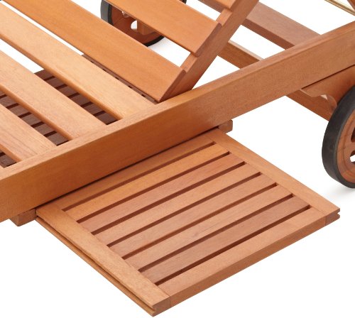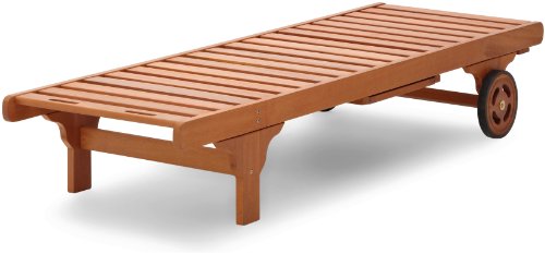 The Strathwood Lounge is ideal for lounging around the pool, back yard or deck. The back features a 5 position adjustment for upright seating, very relaxed seating or completely flat seating. A very handy tray slides to either side or can rest below the chaise when not in use. For more comfort, add a chaise lounge cushion. This sturdy chaise lounge is easily assembled with an adjustable wrench and the supplied allen wrench. The entire chaise is made of eucalyptus which is an all-weather wood that is dense and durable. Eucalyptus requires no finishing and will not rot when left outdoors, whereas rain and sun will damage other lesser quality woods. Left untreated, eucalyptus will weather to a soft warm shade of gray similar to the weathering of teak. Sturdy mortise and tenon construction provides the highest quality joinery that will last for many years. Original color can be maintained by applying a seasonal coat of teak oil.